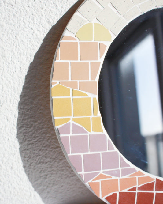 Miroir mosaïque paysage abstrait fait main, diamètre 30cm avec accroche derrière