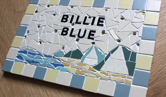 Adresse plaque nom numéro de maison en mosaïque céramique 16 X 24cm, déco décoration bord de mer, plage et falaises, personnalisable couleurs