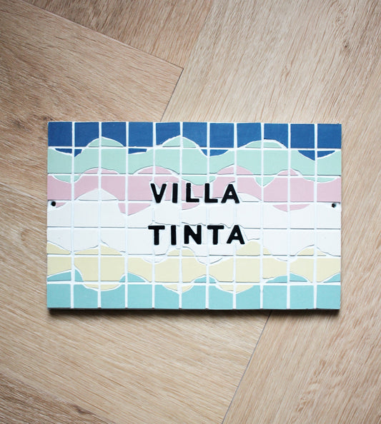 Adresse plaque nom numéro de maison en mosaïque céramique 16 X 24cm, déco décoration style vagues contemporains, personnalisable couleurs