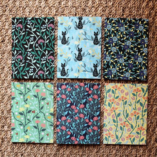 Carte imprimé en France avec motifs fleurs sur papier recyclé